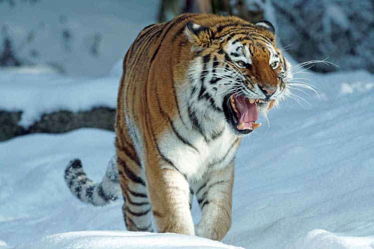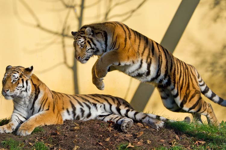Tigers are powerful and agile animals, and are capable of running at speeds of up to 65 kilometers (40 miles) per hour. They are also skilled climbers, and can jump up to 10 meters (33 feet) in a single bound. - Senses