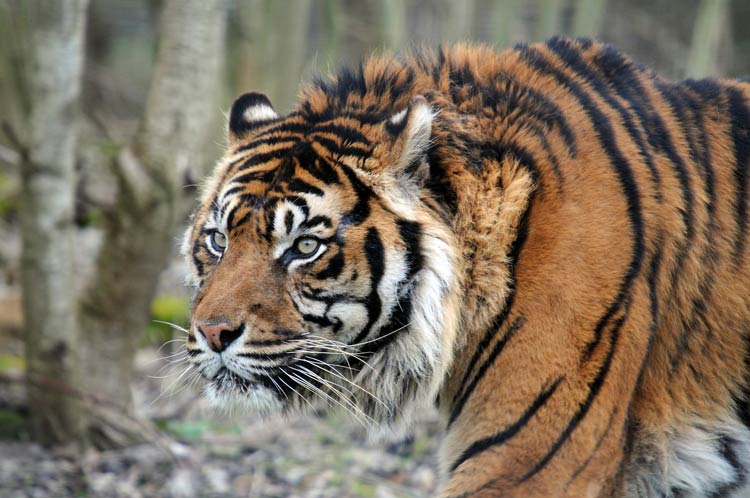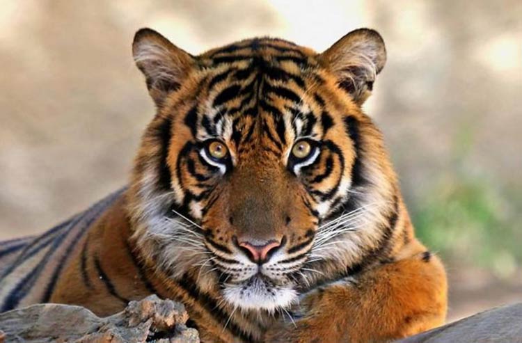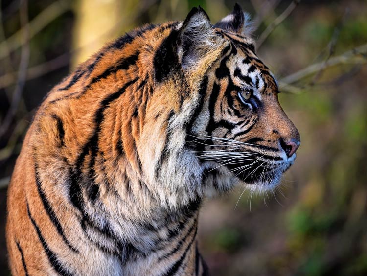 This subspecies is found in Sumatra, Indonesia, and is the smallest subspecies of tiger.
